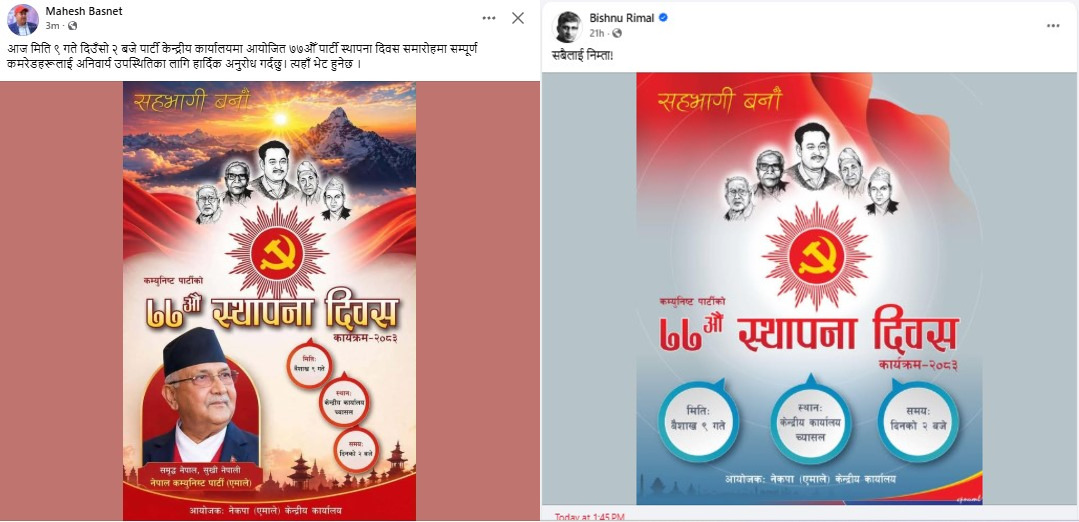 Prime Minister Pushpa Kamal Dahal, Speaker Devraj Ghimire, Nepali Congress President Sher Bahadur Deuba, CPN (Unified Socialist) leader Jhalanath Khanal, Deputy Prime Minister Narayan Kaji Shrestha and other leaders attended the tea reception.