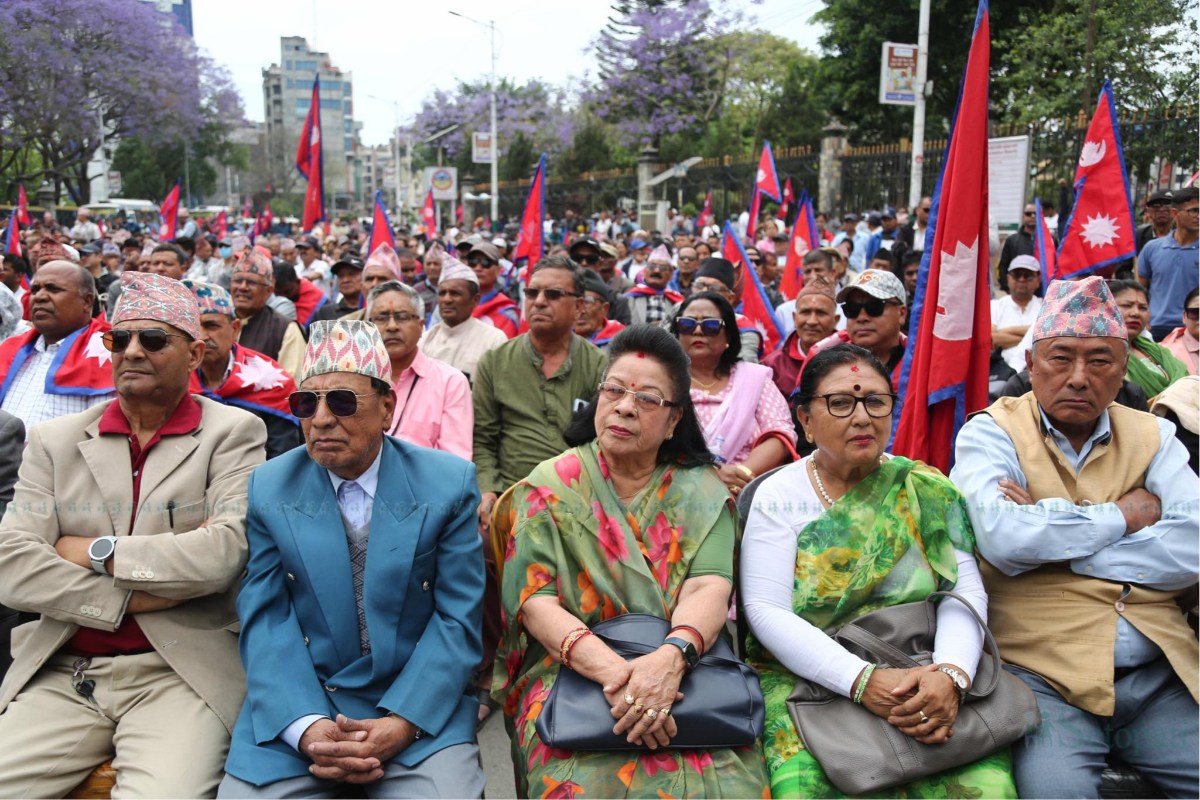 Leaders from various parties and campaigns advocating for agendas including the reinstatement of monarchy were seen sharing the same stage as they gathered at Shanti Batika in Kathmandu on Monday afternoon.